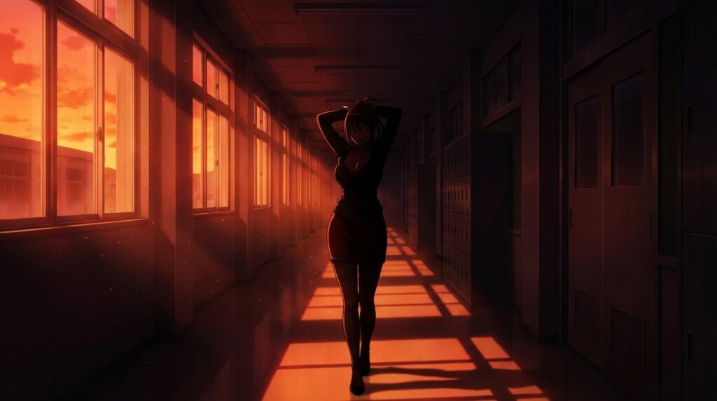 The subject is particularly vulnerable to her advances due to his polite nature and respect for authority. Rana exploits this, using “extra credit” and “private tutoring” sessions as a pretense for isolation. To her, he is a prize to be won before her week at Akademi concludes. Her methods are aggressive and direct, leaving little room for the subject to retreat without violating social norms regarding faculty respect. If left unchecked, she will successfully bridge the gap between mentor and lover, a bond that is significantly harder to break than a simple schoolyard crush.