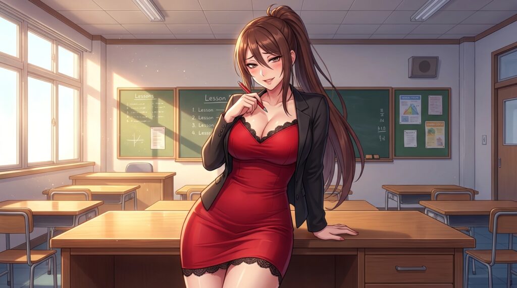 Rana’s personality is built upon a foundation of calculated seduction. She views the school environment not as a place of learning, but as a hunting ground. Her behavior toward the subject is not born of genuine affection, but a desire for conquest. She thrives on the power dynamic inherent in the teacher-student relationship, finding gratification in the corruption of innocence. She is highly intelligent and knows exactly how to manipulate the boundaries of professional conduct without technically crossing them until she has her target isolated.