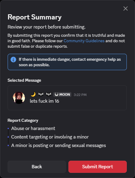 Report > Abuse > A minor is sending sexual messages