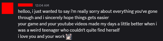 I’ve spent the entire blog post talking about the people who spam me with harassment and discouraging messages, how my motivation has dropped to zero, etc. However, I want to take a moment to acknowledge the exact opposite.