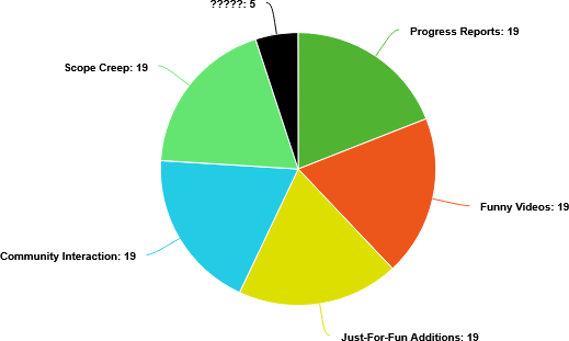 (As I’ve said many times, I don’t think there’s anything wrong with doing things like that. I don’t think there’s any rule that says “If you’re developing a video game, you’re not allowed to do anything else with your time” or “If you’re developing a video game, absolutely everything you put into the game needs to be related to the core objective of the game.” I think it’s perfectly fine to be a Developer/YouTuber hybrid, or to develop the type of game that periodically gets updated with a wide variety of features.)