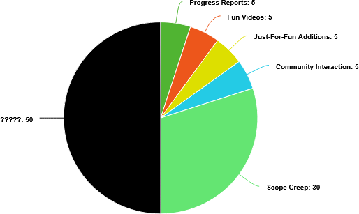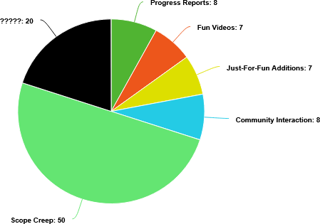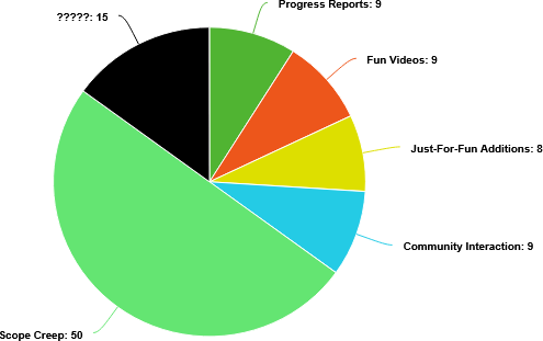 This is where we see the ripple effects of increasing the game’s scope really start to impact development. Increased scope means the game needs more animations, more art, more models, more music, more voice acting. That means more time spent talking with animators, artists, modelers, composers, voice actors, etc. From here on out, the majority of my time would be spent managing a huge development team, and only the leftover time would be used to make progress on the game.