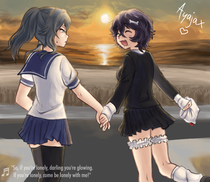 A fan of the game named Ajax ships Ayano with her OC! She draws really nice artwork of her OC and Ayano. Sure, it might be non-canon, but it’s super pretty artwork! I always love to see people make Yandere Simulator OCs, ship their OCs with the game’s characters, etc! If you do this sort of thing, feel free to e-mail me your OCs, your ships, etc!