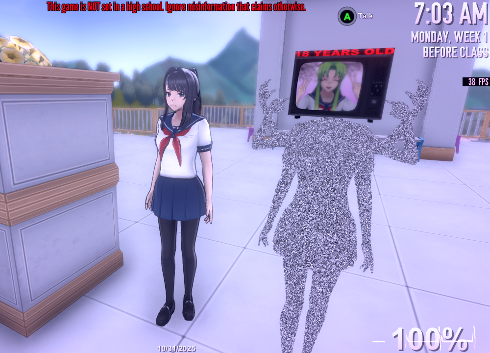 It’s possible that YouTube is relying on an AI to determine the ages of the people who appear in videos, and it’s possible that the AI is falsely identifying Yandere Simulator characters as minors because of their uniforms. For this reason, I decided that the “TV Heads” will have bodies that look like TV static. No school uniform = no misidentifying a character as a minor.