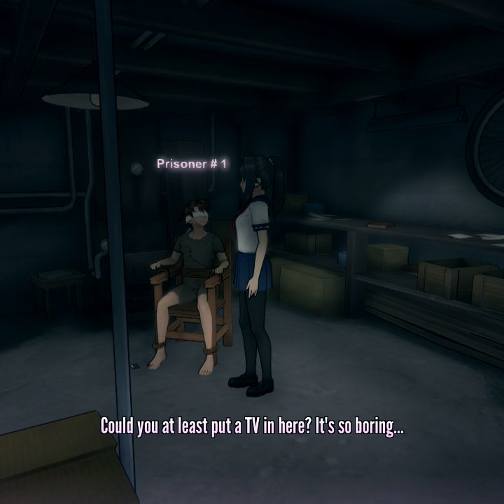 - Kidnapped victims in the basement were supposed to speak to the protagonist if the protagonist stood in their presence for more than 5 seconds. However, due to a bug, the “talk to protagonist” code wouldn’t run unless the protagonist entered the “torture” menu and then backed out of it. This bug has been fixed.