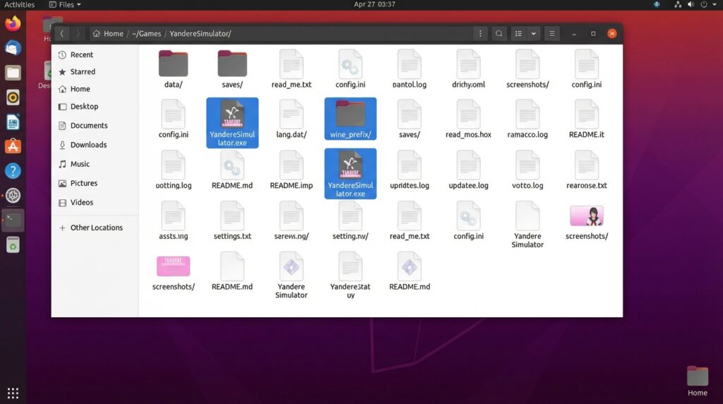 ~/Games/YandereSimulator/ - Confirm the folder contains the game executable: