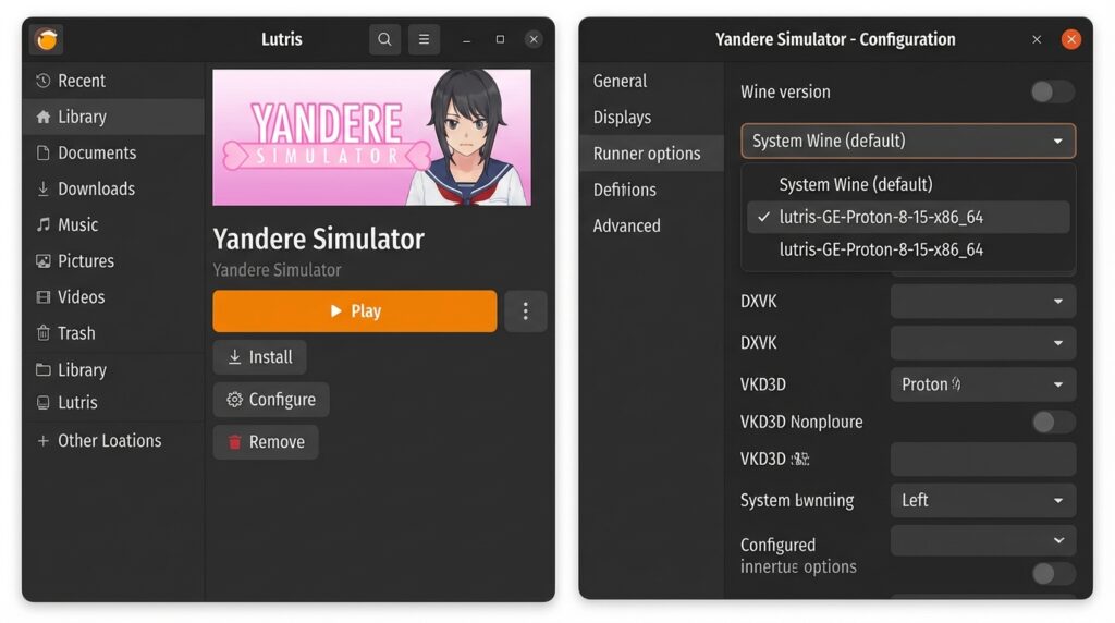This guide walks you through installing and playing the Windows build of Yandere Simulator on a 64-bit Linux system in 2026 using Lutris and the Wine runner. The recommended approach here is to add the game as a locally installed game in Lutris and run it with a Lutris Wine runner (often switching to a newer compatibility-focused runner after the first launch).