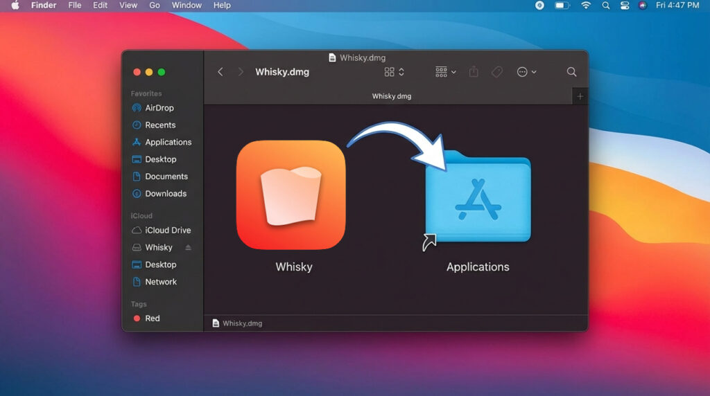 - Download Whisky from the official Whisky site (GetWhisky) as a DMG.