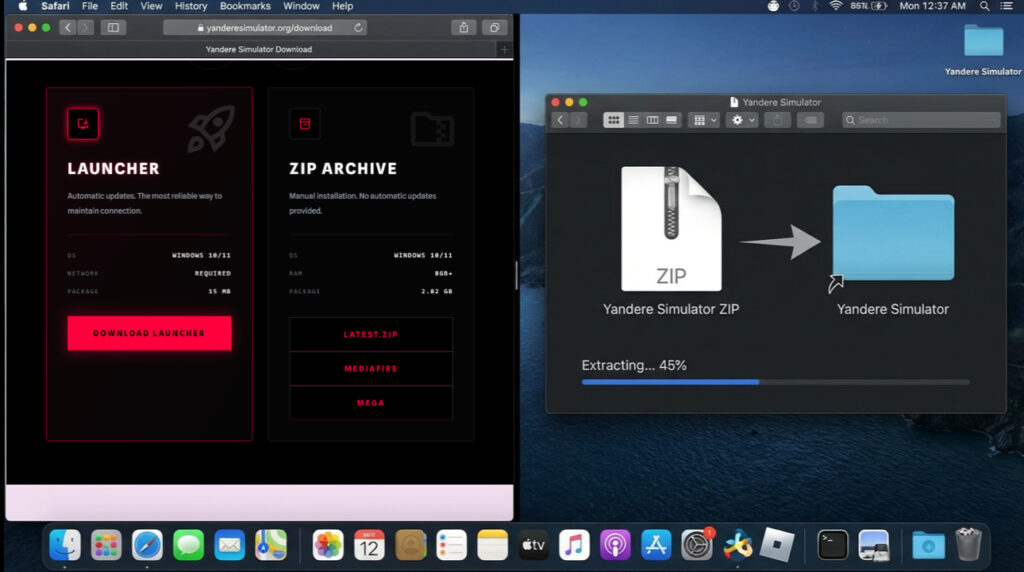 This step gets the official Windows game files. Since Yandere Simulator is officially Windows-only, you will run the Windows build through Whisky on macOS.