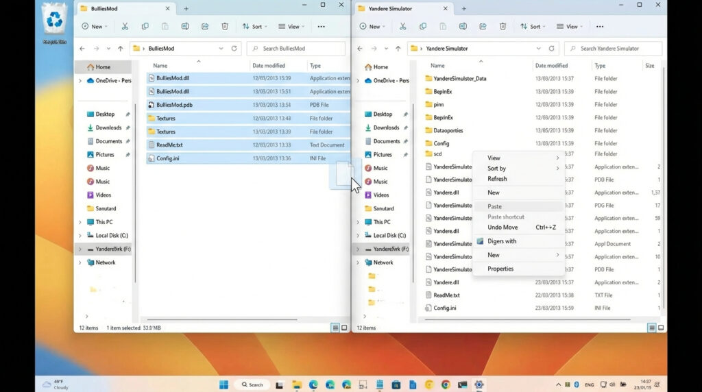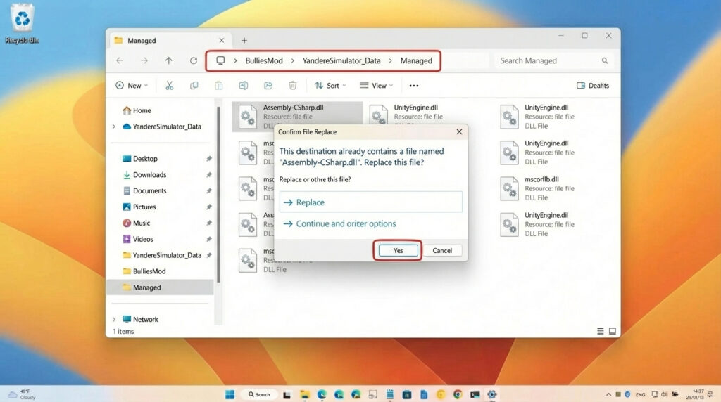 - Place the newly downloaded bug fix file into: BulliesMod/YandereSimulator_Data/Managed