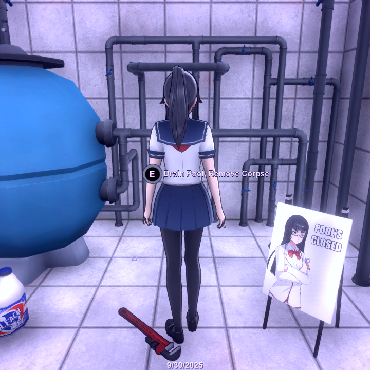 Previously, if the player killed a rival by drowning her in the school pool, it was impossible to access the rival’s corpse and dispose of it. But, starting in this build…